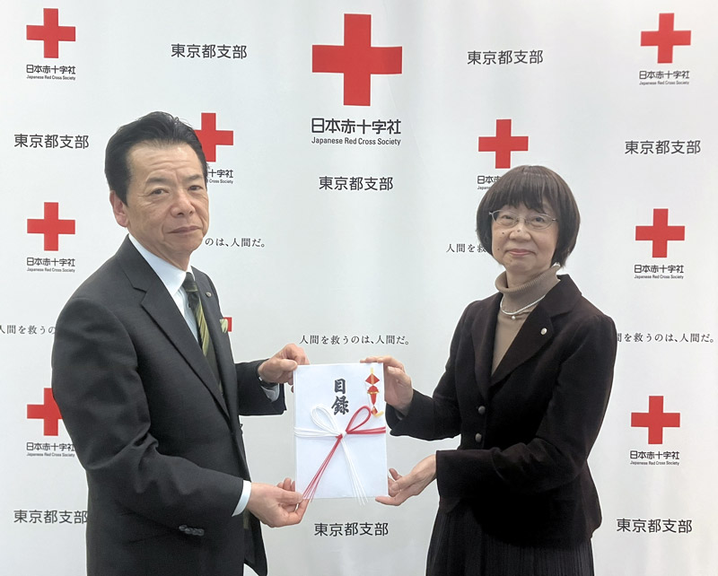 本年は「東京都日赤紺綬有功会」創立60周年、弊社創業90周年の年にあたります。その節目の記念として日本赤十字社 東京都支部へ本日「特別社資」を寄付させていただきました